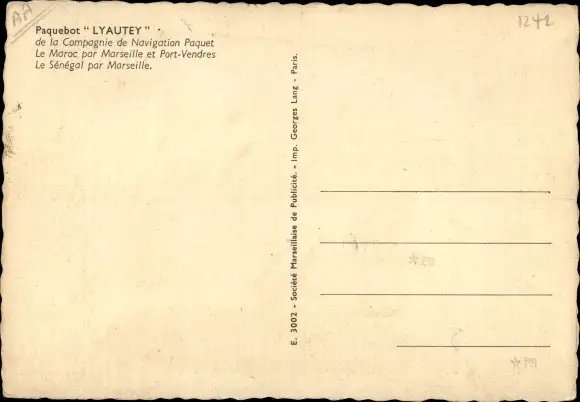 Künstler Ak Dampfer Lyautey, Compagnie de Navigation Paquet, CNP