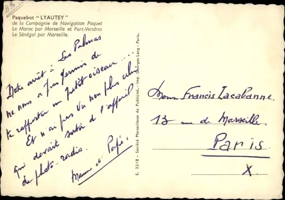 Künstler Ak Dampfer Lyautey, Compagnie de Navigation Paquet, CNP