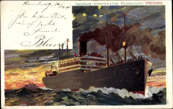 Künstler Ak Dampfer Pretoria, HAPAG