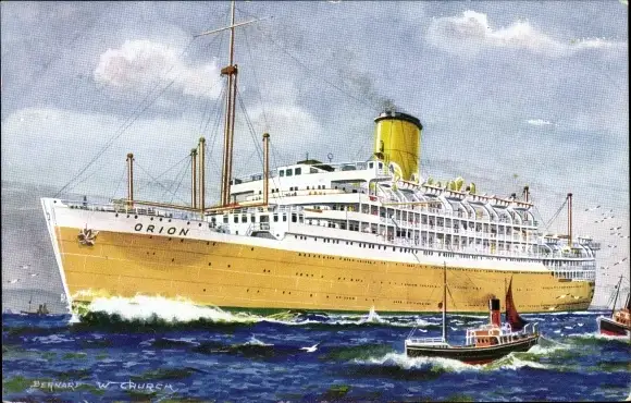 Künstler Ak Dampfer RMS Orion, Orient Line
