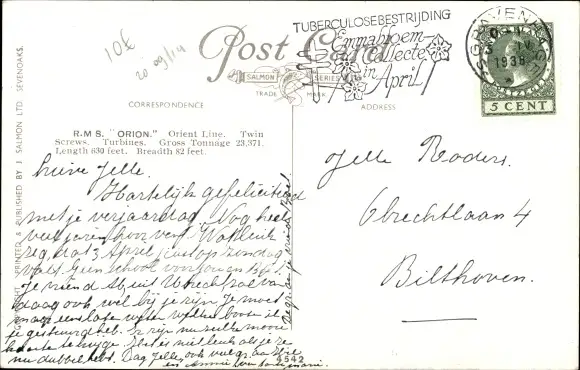 Zustand, siehe Scan, gelaufen, 1938 - ca 14 cm X 9 cm