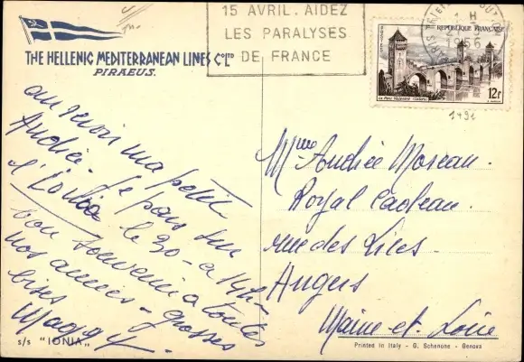 Künstler Ak Dampfer SS Ionia, Hellenic Mediterranean Lines