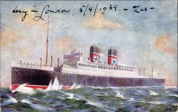 Künstler Ak Dampfer TSS Avila Star, Blue Star Line