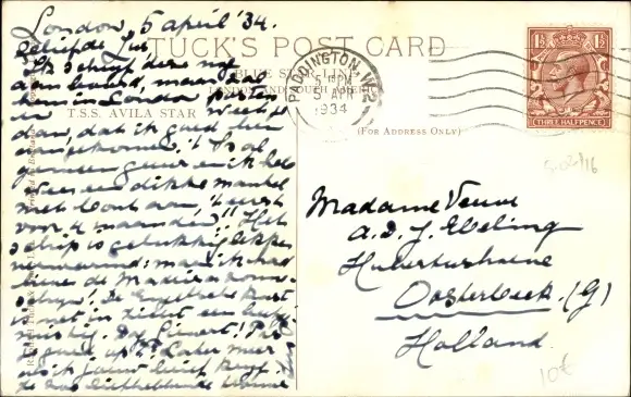 Zustand, siehe Scan, gelaufen, 1934 - ca 14 cm X 9 cm