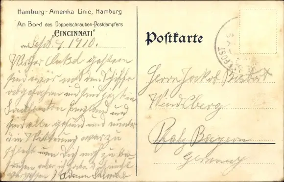 Künstler Ak Dampfschiff Cincinnati, HAPAG