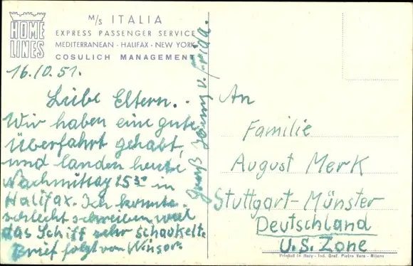 Künstler Ak Dampfschiff MS Italia, Home Lines