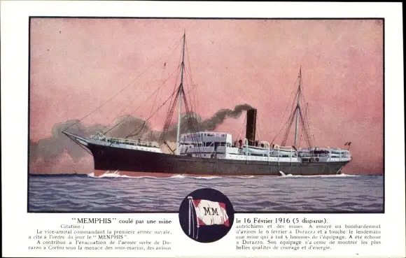Künstler Ak Dampfschiff Memphis, Messageries Maritimes, MM