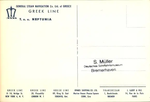 Künstler Ak Dampfschiff TSS Neptunia, Greek Line