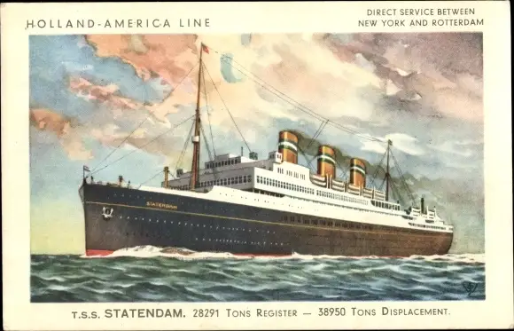 Künstler Ak Dampfschiff TSS Statendam, Holland-America Line, HAL
