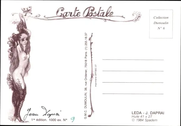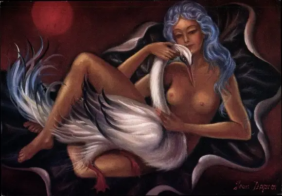 Künstler Ak Daprai, Jean, Leda, Frauenakt, Schwan