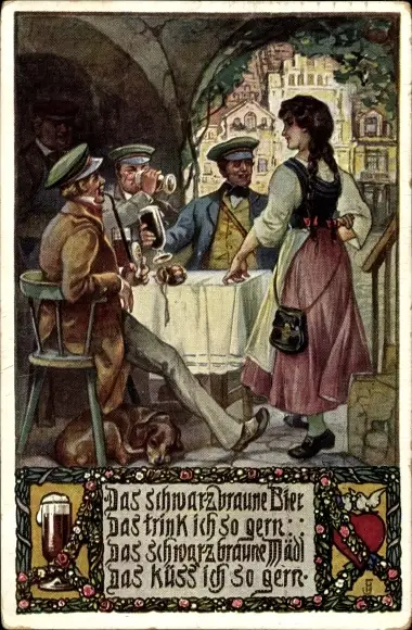 Künstler Ak Das schwarzbraune Bier das trink ich so gerne, Wirtshausszene