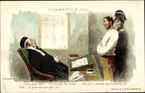 Künstler Ak Daumier, Les Humoristes de Jadis, Verbrecher, Richter, Reklame, Solution Pautauberge