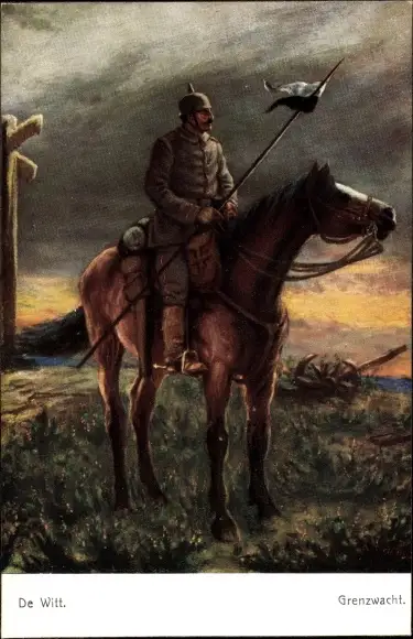 Künstler Ak De Witt, Grenzwacht, Preußischer Soldat zu Pferd
