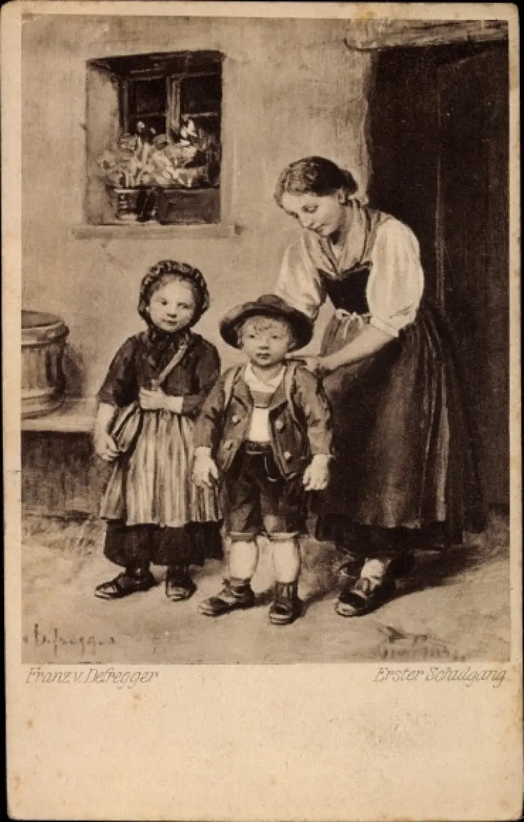 Künstler Ak Defregger, Franz von, Erster Schulgang, Mutter, Kinder