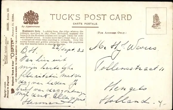 ungelaufen, Rückseite beschrieben, datiert 1933, sehr guter Zustand - Verlag: Tuck 8984