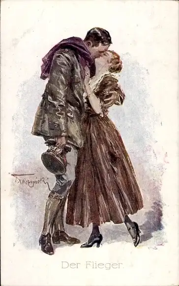 Künstler Ak Der Flieger, küssendes Liebespaar, Abschied