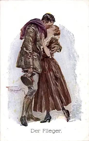 Künstler Ak Der Flieger, küssendes Liebespaar, Abschied