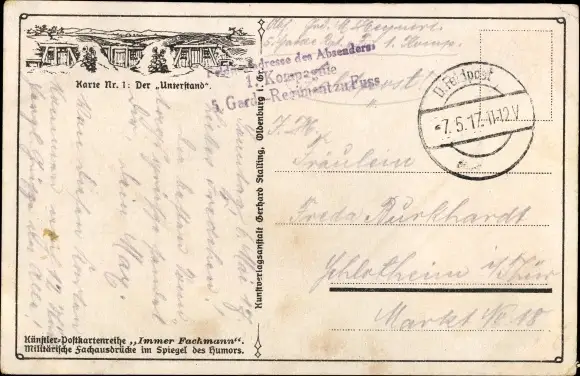 gelaufen als Feldpost 1917, Eckknicke, sonst guter Zustand