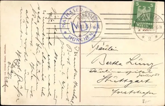 gelaufen 1925, Eckknicke, sonst guter Zustand