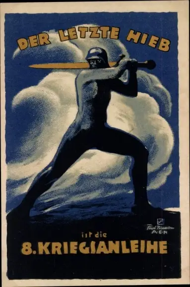 Künstler Ak Der letzte Hieb ist die 8. Kriegsanleihe, Mann mit Schwert