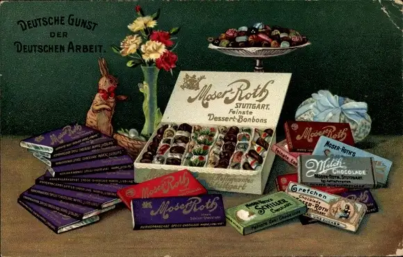 Künstler Ak Deutsche Gunst der Deutschen Arbeit, Moser Roth Schokolade Stuttgart, Reklame