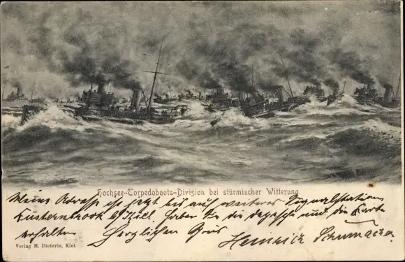 Künstler Ak Deutsche Kriegsschiffe, Hochsee Torpedoboots bei stürmischer Witterung