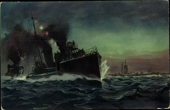 Künstler Ak Deutsche Kriegsschiffe, Torpedoboote und Unterseeboote an der Front, 1914