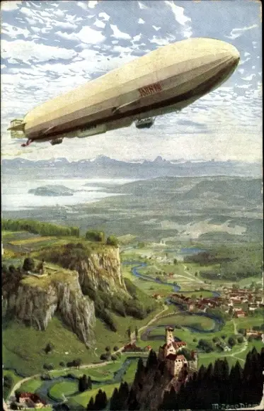 Ansichtskarte, Postkarte, Luftschiff, Zeppelin, Zeppeline, Luftschiffe