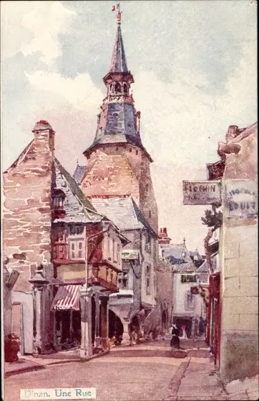 Künstler Ak Dinan Côtes d'Armor, vue générale d'une Rue