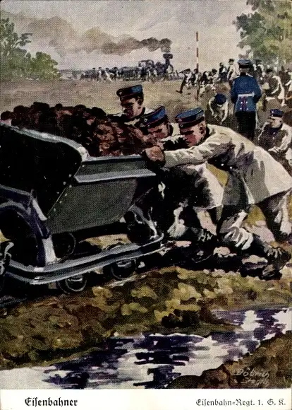 Künstler Ak Döbrich-Steglitz, Eisenbahner, Eisenbahn Regt 1 GK