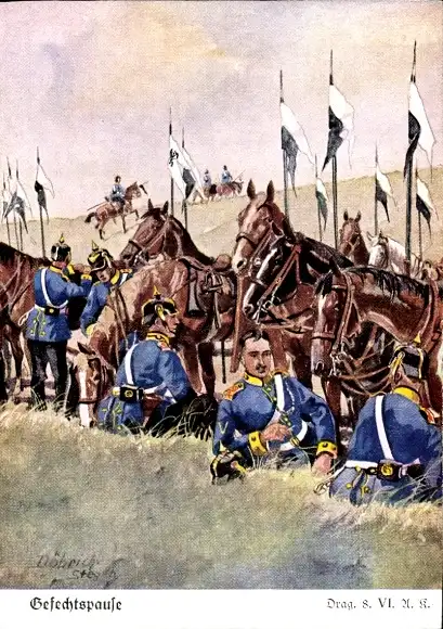 Künstler Ak Döbrich Steglitz, Gefechtspause, Dragoner 8