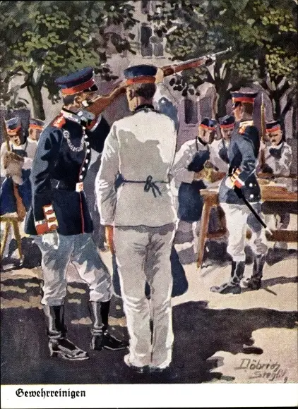 Künstler Ak Döbrich-Steglitz, Gewehrreinigen