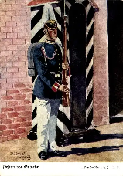 Künstler Ak Döbrich-Steglitz, Posten vor Gewehr, 4. Garde-Regiment