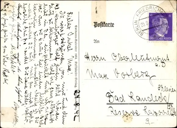 Zustand, siehe Scan, gelaufen, 1942 - ca 14 cm X 10 cm