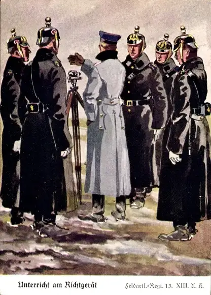 Künstler Ak Döbrich-Steglitz, Unterreicht am Richtgerät, Feldartillerie-Regiment 13