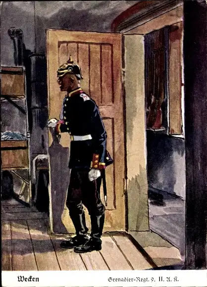 Künstler Ak Döbrich-Steglitz, Wecken, Deutscher Soldat, Grenadier-Regiment 9