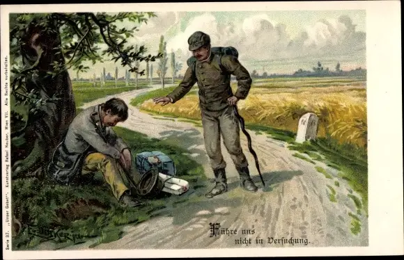 Künstler Ak Döcker, E., Führe uns nicht in Versuchung, Wanderer