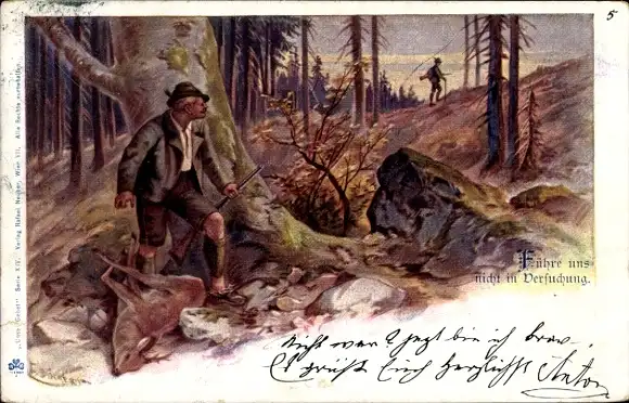 Künstler Ak Döcker, E., Führe uns nicht in Versuchung, Wilderer