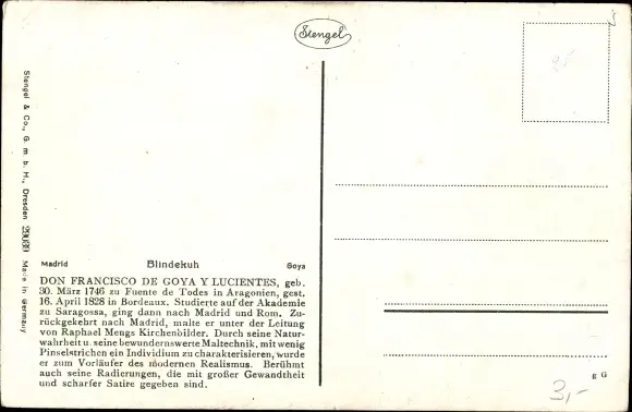 Künstler Ak Don Francisco de Goya y Lucientes, Blindekuh