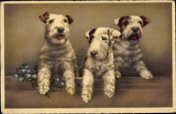 Künstler Ak Drei weiß braune Terrier