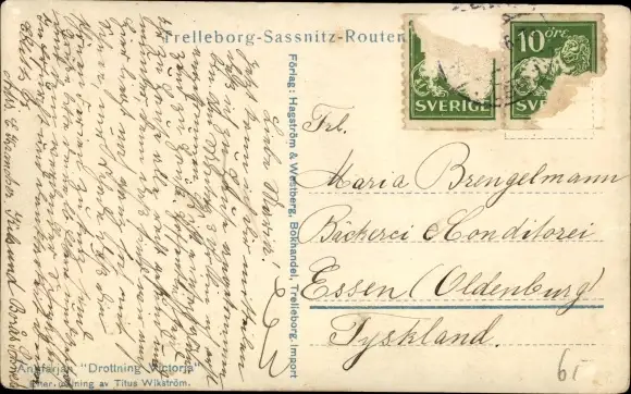Künstler Ak Drottning Victoria, Fährschiff, Dampfschiff, Trelleborg Sassnitz