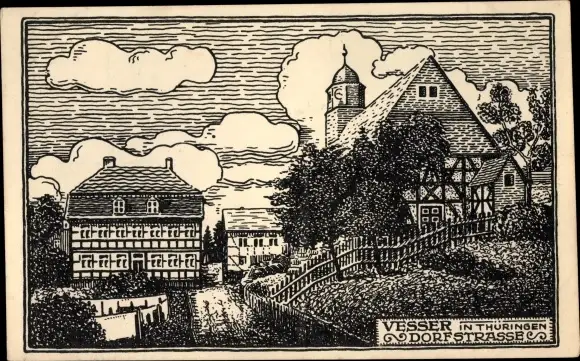 Künstler Ak Dugge, R., Vesser Suhl in Thüringen, Dorfstraße