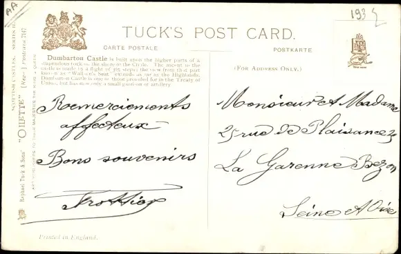 Zustand, siehe Scan, gelaufen- Tuck 7147 - ca 9 cm X 14 cm