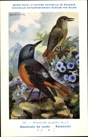 Künstler Ak Dupond, Hub., Monticola saxatilis, Steinrötel