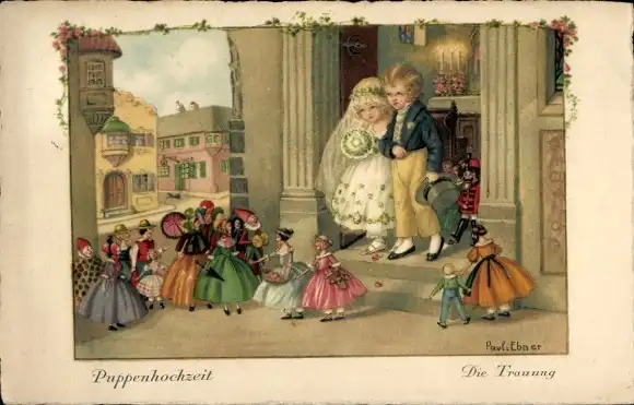 Künstler Ak Ebner, Pauli, Le Cortege, Puppen, Hochzeit