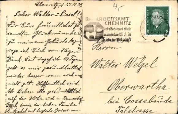 Zustand siehe Scan, 1939, gelaufen - ca 14 cm X 9 cm
