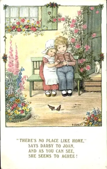Künstler Ak Ebner, Pauli, Paar auf einer Bank vor dem Haus