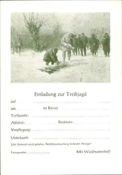 Künstler Ak Einladung zur Treibjagd, Jagdmotiv, Hasenjagd