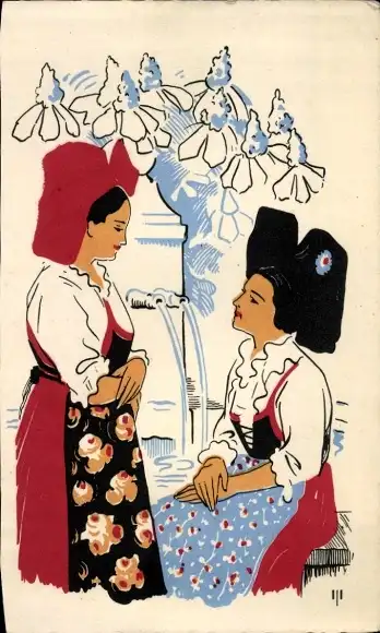 Künstler Ak Elsässerinnen, Frauen in Tracht