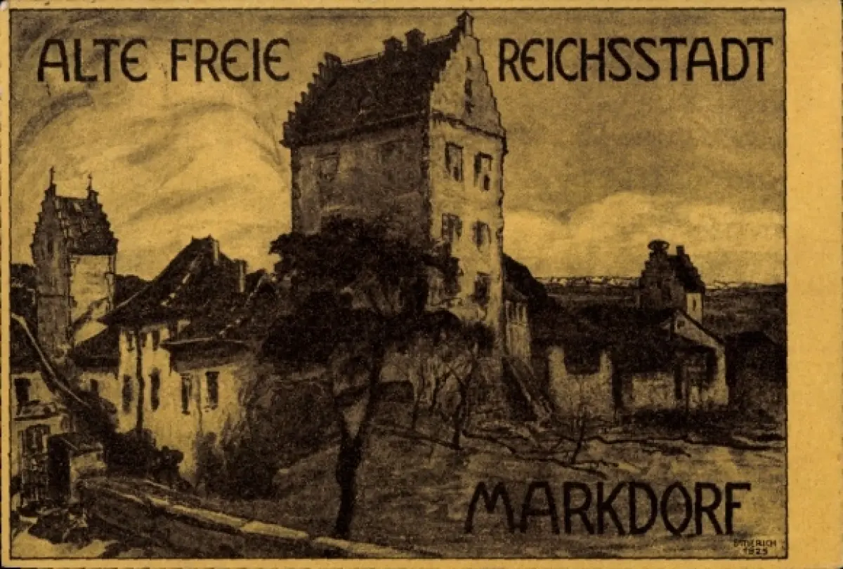 Künstler Ak Emerich, Markdorf im Bodenseekreis Baden Württemberg, Ortspartie, Turm
